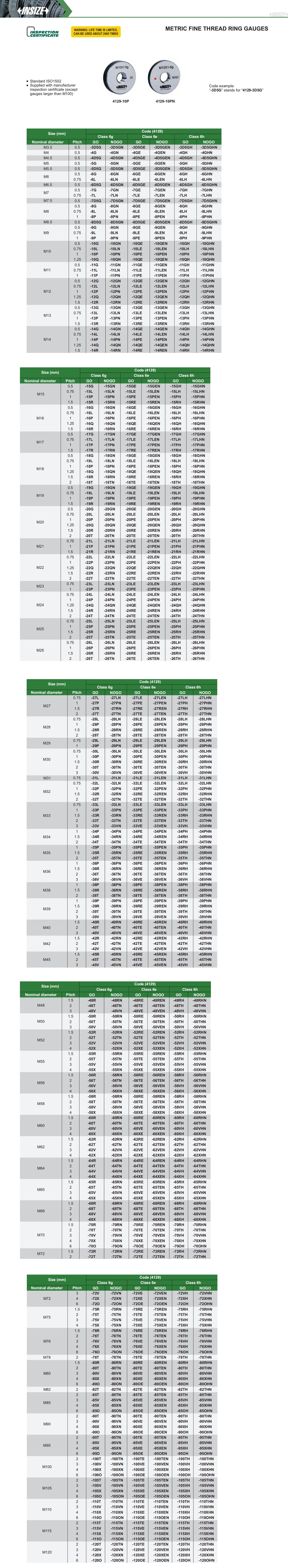 Metric Fine Thread Ring Gauges