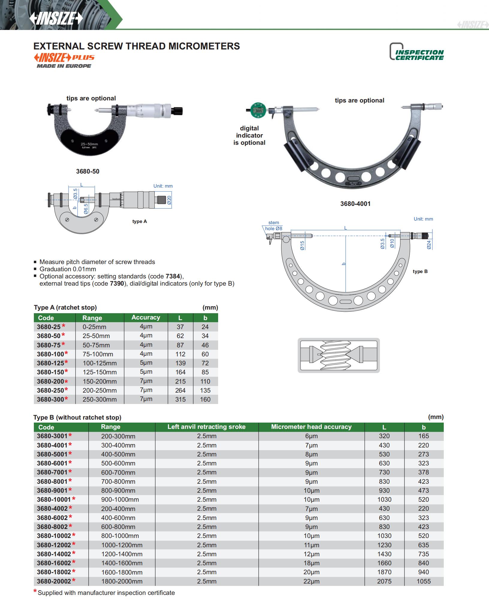 External Screw Thread Micrometers